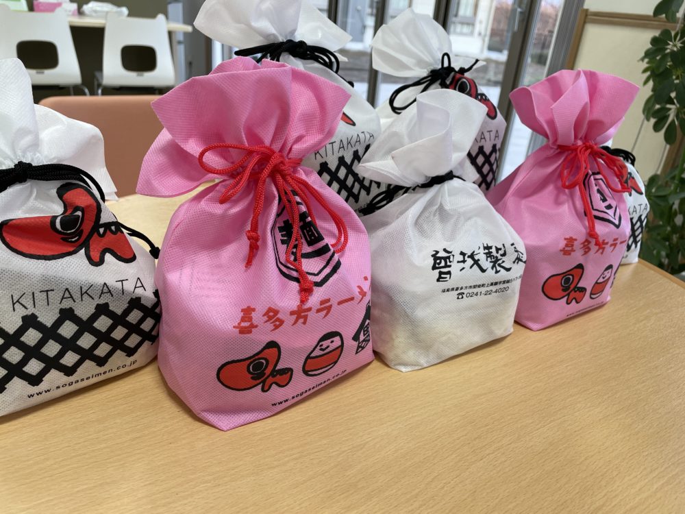 理事長より、コロナ禍の中、1年間頑張っていただいた職員の皆様へ年越しそばの由来である健康長寿を願い、喜多方ならではの「年越しラーメン」がプレゼントされました。中身のラーメンは喜多方で美味しいと評判の「曽我製麺」さんのラーメンです。