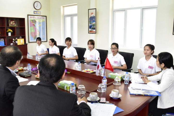 今回はベトナムの首都ハノイに赴き、現地の日本人学校に通う学生の中から介護職への就職を希望する学生32名を対象に集団面接を実施しました。