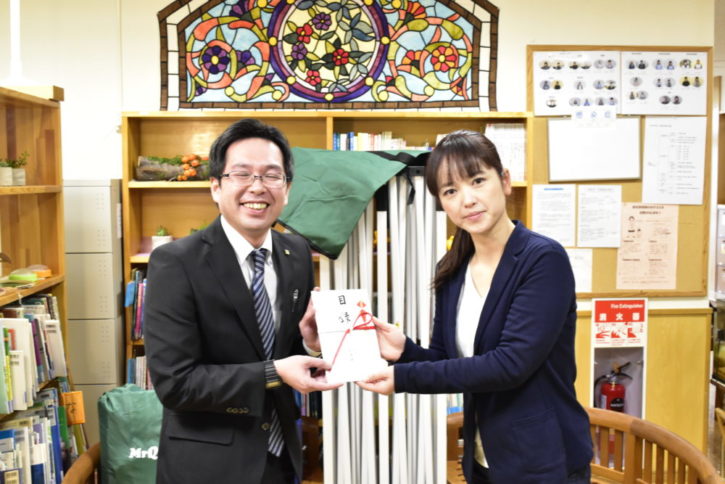 寄贈後、園長より感謝状を贈呈し、今後行事や夏のプール等で使わせていただく旨を話していました。