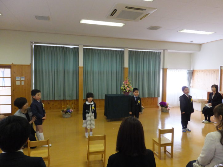 乳幼児期を過ごした4人の旅立ちです。一人ひとり園長より卒園証書を授与された後、将来の夢を大きな声で発表しました。