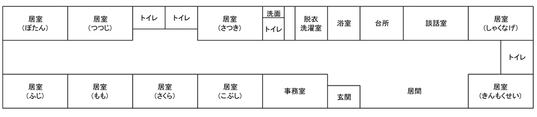 認知症のため自宅で生活が困難な高齢者の方が家庭的な環境のもとで適切な介護や援助を受けながら、食事の準備、清掃及び洗濯等の家事を職員と一緒に共同で行い、できるだけ認知症の進行を穏やかにすることを目的とした施設です。